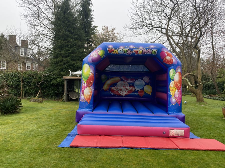 When it's party time, you can't go wrong with our party time themed bouncy castle! It's covered with images of balloons and other party decorations, which means it suits all kinds of events, and because it's suitable for adults as well as children, people of all ages can have a bounce!