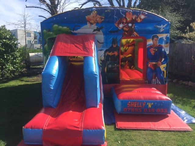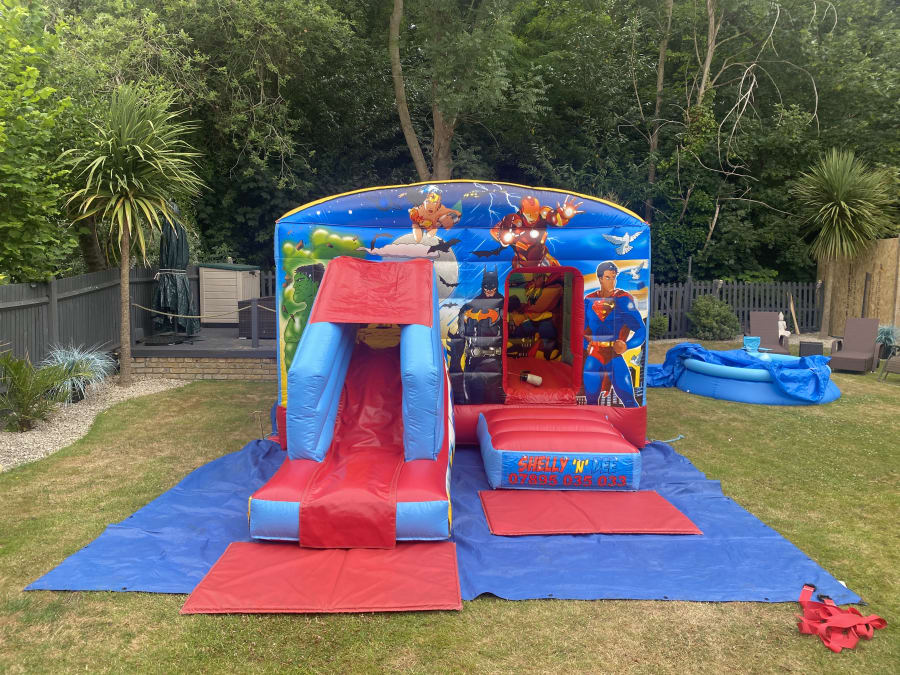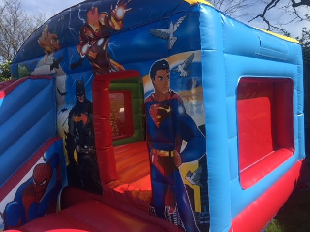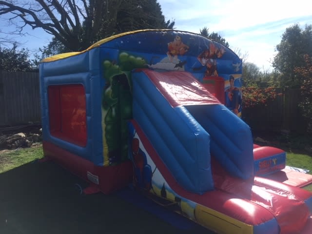 This bounce and slide combination unit features images of the much-loved characters from classic superheroes comics. Bounce on the bouncy castle, slide down the slide and marvel at the beautiful artwork - it's sure to go down a treat among kids that admire, enjoy and imitate their favourite heroes.
