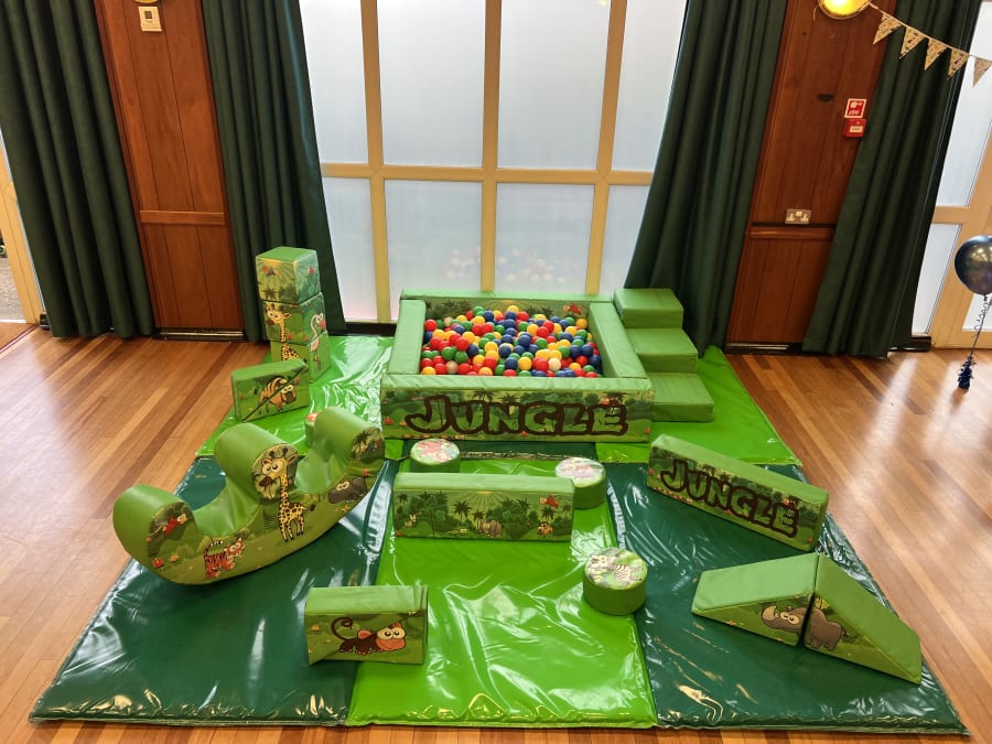 Soft play fun for the under 5's. Jungle themed c puzzle pieces for children to enjoy putting together, animal bouncers and a ball pond for hours of fun and imaginary safari play.